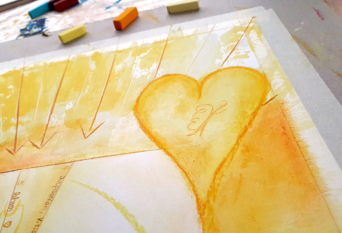 Nach dem Seelenplan-Reading beginnt der Malprozess. Je nach Größe und Material dauert es in der Regel einige Wochen, bis dein Seelenbild fertig ist.